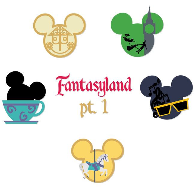 Even More Mickey Heads! This set is for Fantasyland (Teacup, Small World, Peter Pan, Carousel, and Philharmagic). Each die cut is 3.25 in x 3 in approx.